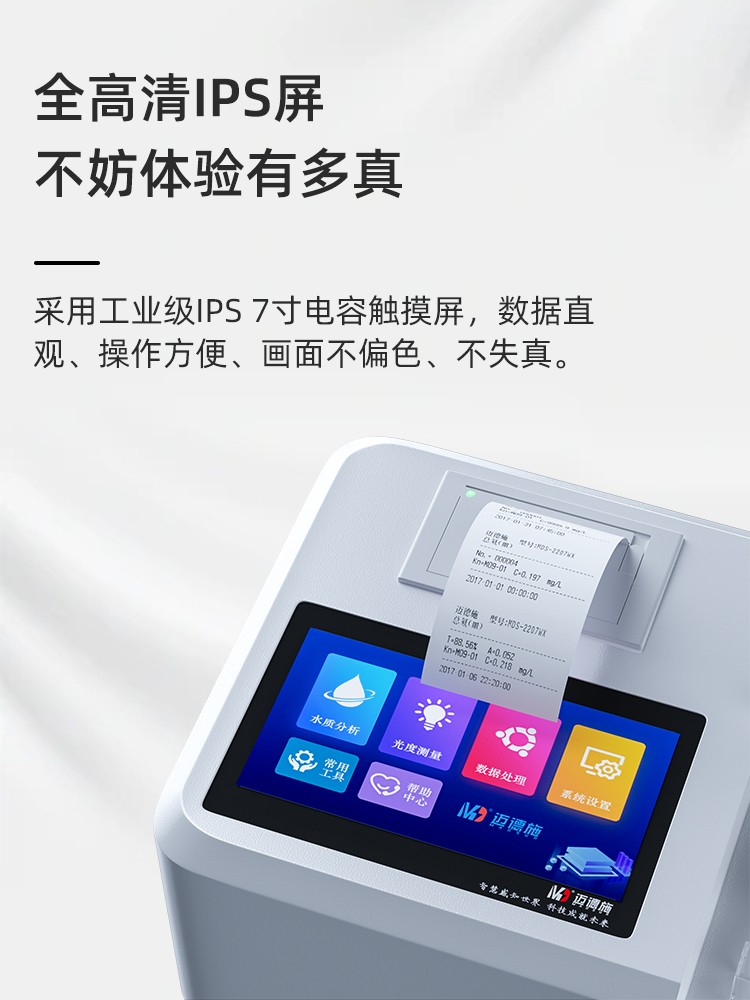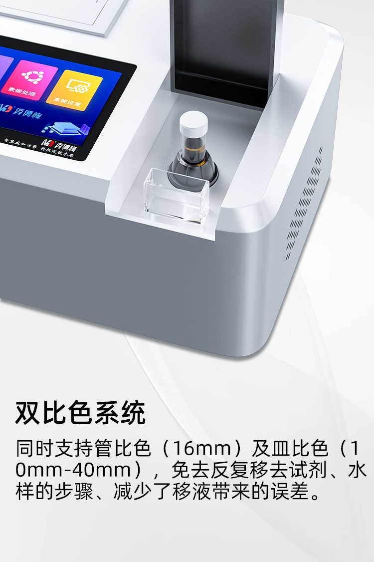 人工智能語音播報提示,可隨意調節(jié)音量, 使用更方便更 配備112種預先編程的曲線,曲線數(shù)量990條,可濃度直讀,測量結果更精密; 具有數(shù)據(jù)存儲功能,可存儲90萬組數(shù)據(jù),并能自由查看; 10寸彩色液晶顯示觸摸屏,全中文操作模式,更便于操作掌握; 儀器自備校準功能,可根據(jù)標準樣品計算, 并存儲曲線,無需手動制作曲線; 配備USB接口傳輸功能,自帶打印機,可打印當前數(shù)據(jù)及存儲的歷史數(shù)據(jù); 采用管比色、皿比色,雙比色系統(tǒng)